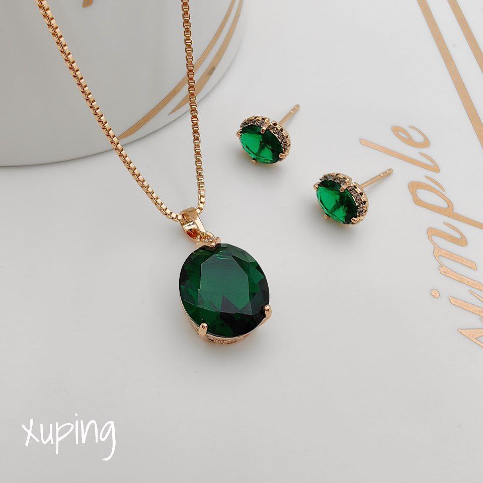 نیم ست زنانه ژوپینگ نگین سبز زمردی کد BM-1367